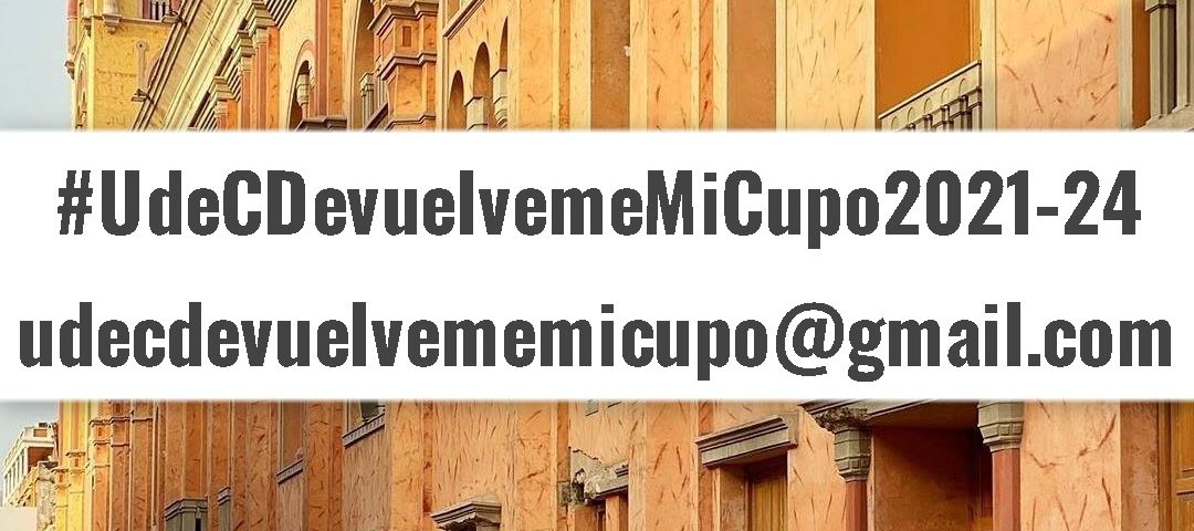 #UdeCDevuelvemeMiCupo2021-24 y el correo electrónico: udecdevuelvememicupo@gmil.com para que todas aquellas personas que sientan que le robaron el derecho de ingresar a la Universidad de Cartagena, puedan comunicarse con los dirigentes sindicales.