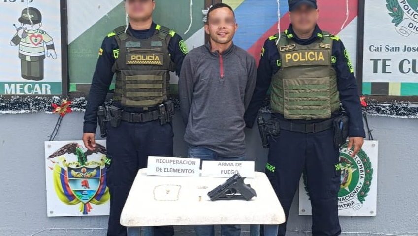 El hecho se registró en la calle Valencia, del barrio El Recreo, con la captura de este sujeto de 22 años, quien minutos antes había hurtado las pertenencias de un ciudadano, mediante intimidación con un arma de fuego tipo pistola 9 milímetros.